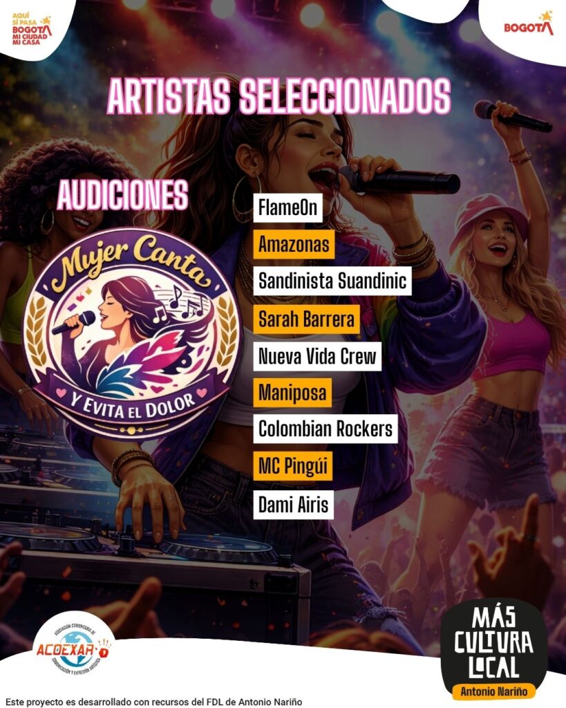 El proyecto Mujer Canta y Evita el Dolor abre oficialmente su convocatoria para descubrir y promover a los mejores talentos musicales de la localidad de Antonio Nariño, en una iniciativa que une el arte, la cultura y la construcción de una sociedad libre de violencias de género.